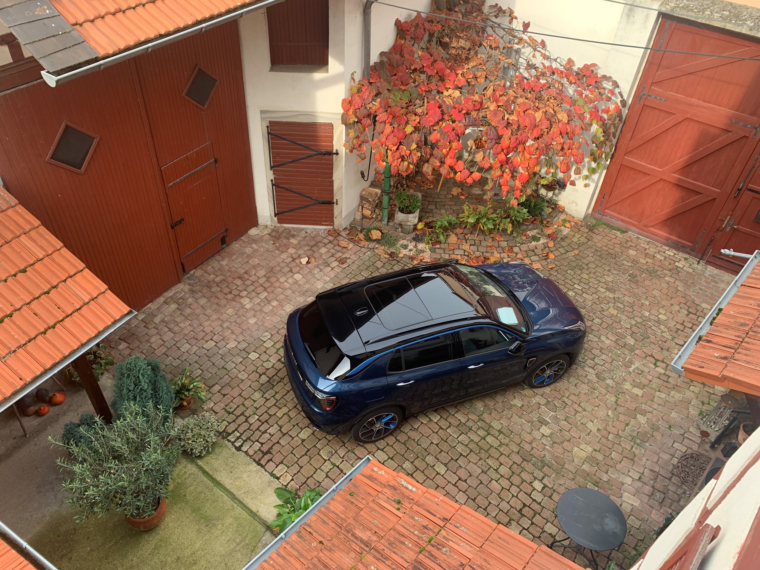 Mein Lynk 01 im Hof meiner Eltern geparkt und an einer normalen Steckdose angestöpselt.